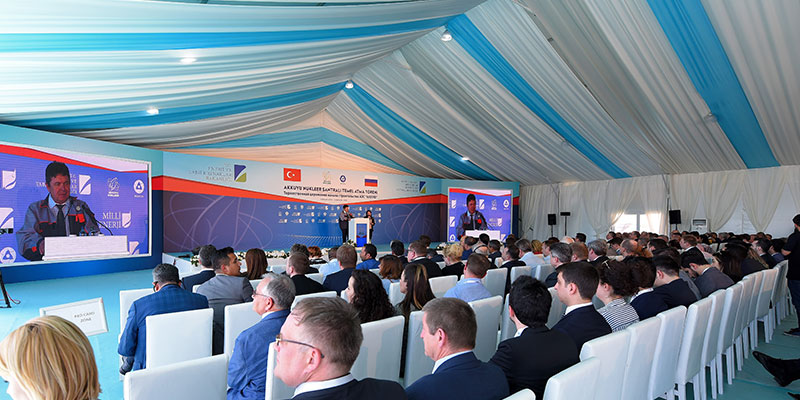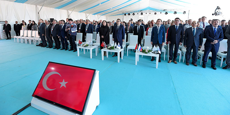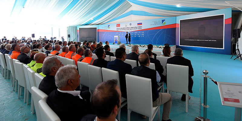 Mersin Akkuyu'da Kalkınma Bakanı Lütfi Elvan düğmeye basarak santralin temelini atarken, Cumhurbaşkanı Recep Tayyip Erdoğan ve Rusya Devlet Başkanı Vladimir Putin ise törene, Cumhurbaşkanlığı Külliyesi'nden video konferans yöntemiyle katıldı.