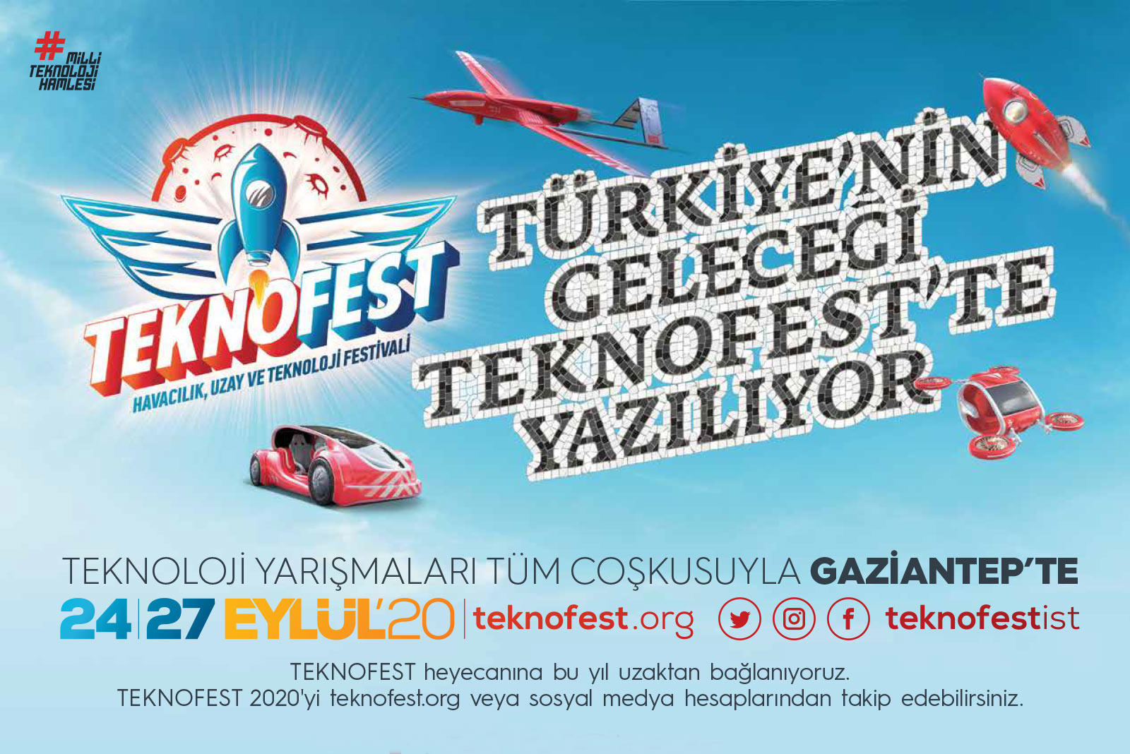 EVENTİN HİKAYESİ EVENTİN HİKAYESİ“Milli Teknoloji Hamlesi” sloganı ile yola çıkan ve Türkiye’nin teknoloji üreten bir topluma dönüşmesini hedefleyen TEKNOFEST, Türkiye Teknoloji Takımı Vakfı ve Sanayi ve Teknoloji Bakanlığı yürütücülüğünde 24 - 27 Eylül tarihleri arasında milli mücadelenin gazi şehri Gaziantep’te gerçekleştirildi.
